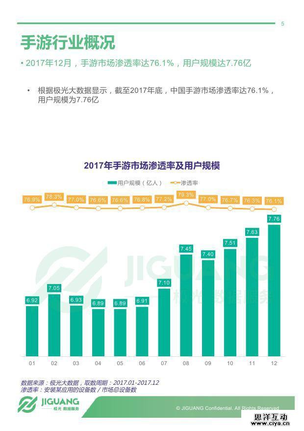 2017年手机游戏市场可谓是百花齐放的一年,从地方棋牌类游戏的迅速崛起,到“吃鸡”游戏的风靡,再到年底朋友圈刷屏的二次元女性向游戏,都牵动了无数玩家的心。极光大数据发布《2017年手机游戏市场研究报告》,从全年手机游戏行业整体表现切入,全面展示各细分类别手游市场表现,并结合手游app用户画像数据对2017年手游市场进行深入解读。同时,报告还推出渗透率top10手游榜单,展示头部手游app的市场表现。