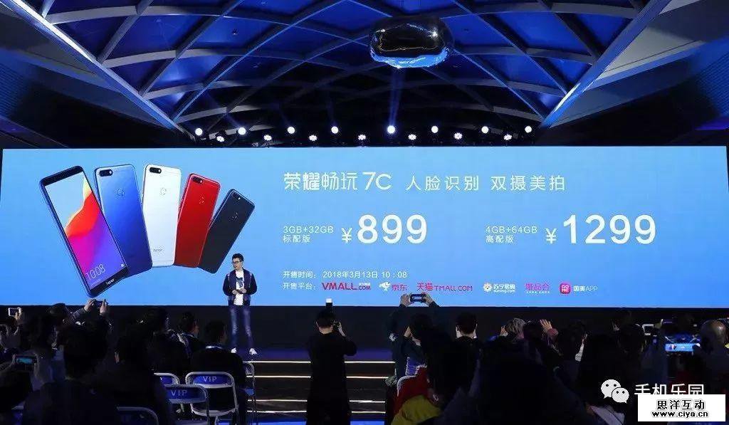 荣耀畅玩7C分为标配和高配两个版本,3GB+32GB标配版售价899元,4GB+64GB高配版售价1299元。将于3月13日10:08正式在华为商城、京东、天猫、苏宁易购等平台正式开售,感兴趣的朋友可以前往华为官网了解一下。