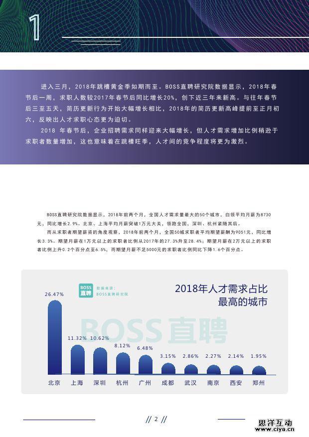 进入三月,2018年跳槽黄金季如期而至。BOSS直聘研究院数据显示,2018年春节后一周,求职人数较2017年春节后同比增长20%,创下近三年来新高……