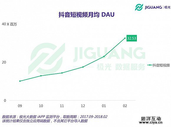 平均每100个移动网民中有14个是抖音用户,月均DAU超3,200万