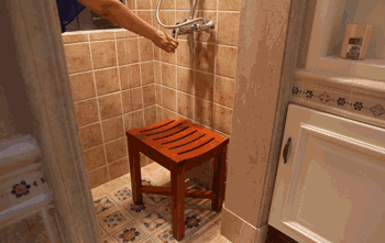 可不要小瞧这把椅子,它可是一把可自动伸缩的椅子,坐在上面缓缓收回的椅子可将人送至淋浴房,大大避免了行动不便的人群,需要别人帮助才可进入淋浴房的尴尬。