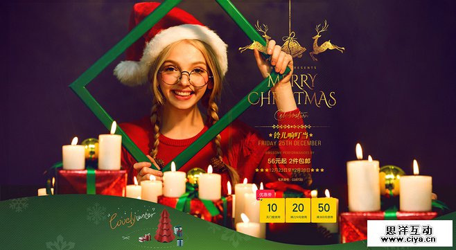 以上,整个从联想元素到最终完成一个Banner设计的过程就完成啦,需要说明的是这只是一个比较常规的圣诞节Banner,谈不上非常有创意,但是思维发散的原理和思路差不多都是大同小异的。