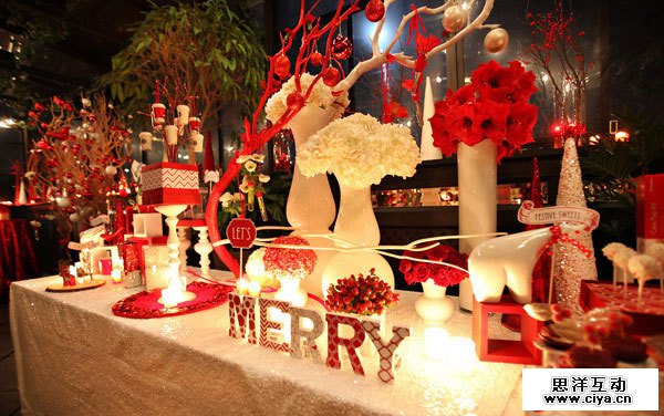 打破红配绿的魔咒,圣诞节其实不一定非要用红配绿的,因为除了颜色以外,还可以通过用相关元素点缀什么的来呼应圣诞节日啊。