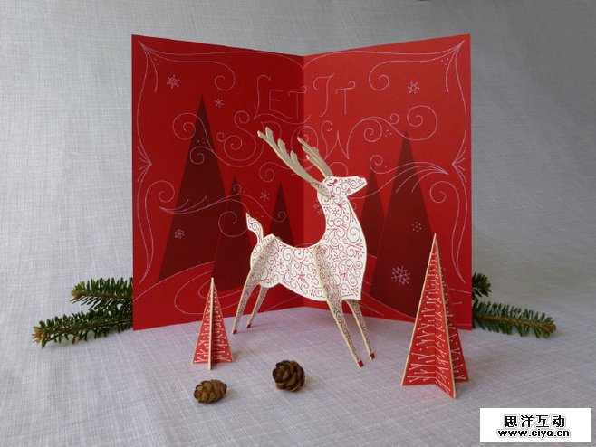 我觉得这个可以跟圣诞卡片的制作取一些经,这些卡片的制作其实也都涉及到了三大构成相关的知识(色彩构成/平面构成/立体构成),尤其是大家接触比较少一点的立体构成知识。