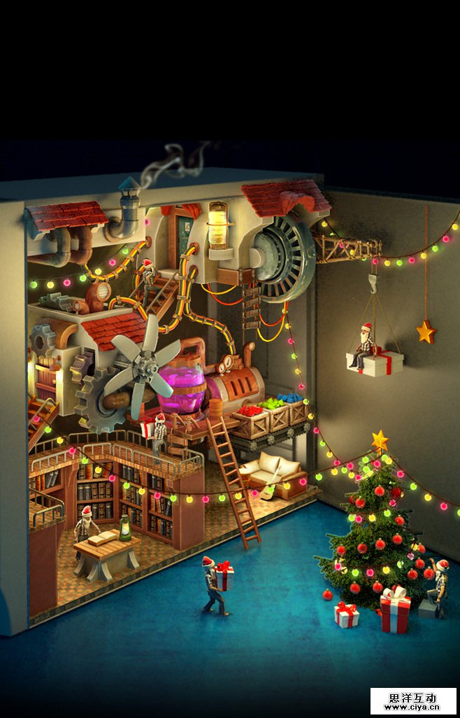 说到圣诞节相关的设计,估计大部分正常人想到的都是白茫茫的雪地里,一位和蔼可亲的圣诞老爷爷驾着驯鹿拉的雪橇,背上还有一个大袋子,袋子里面装满了各种各样的礼物,这些礼物会被挨家挨户地送到需要的人手里,这么样一个场景。