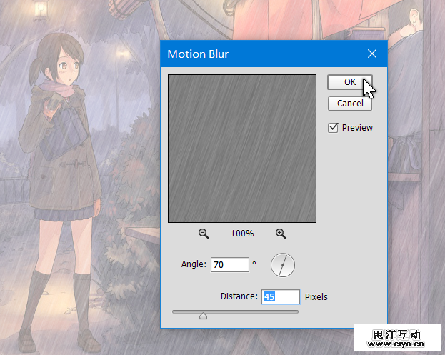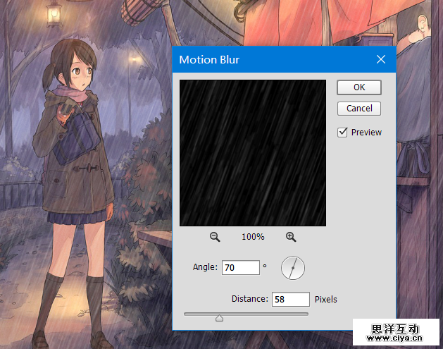 接下来,添加动感模糊滤镜,参数如下: