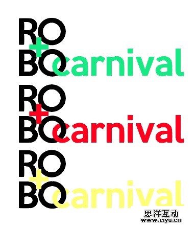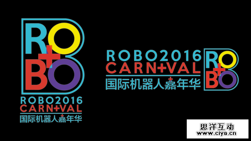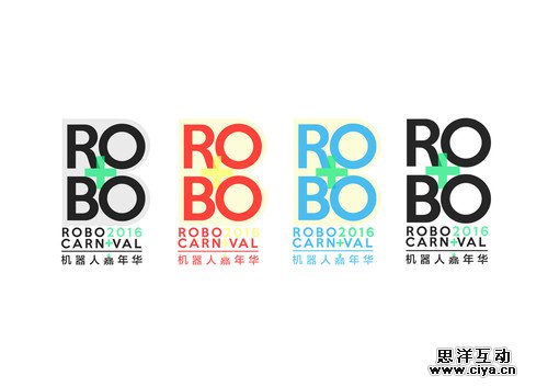 第一版设计稿:在设计初期就确定的主题:英文"ROBO+"字样,和“机器人嘉年华”相对应,中间的+号和“嘉年华”同音,同时在整个logo中间祈祷一个点题的作用,使画面不再单调。