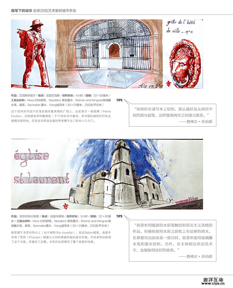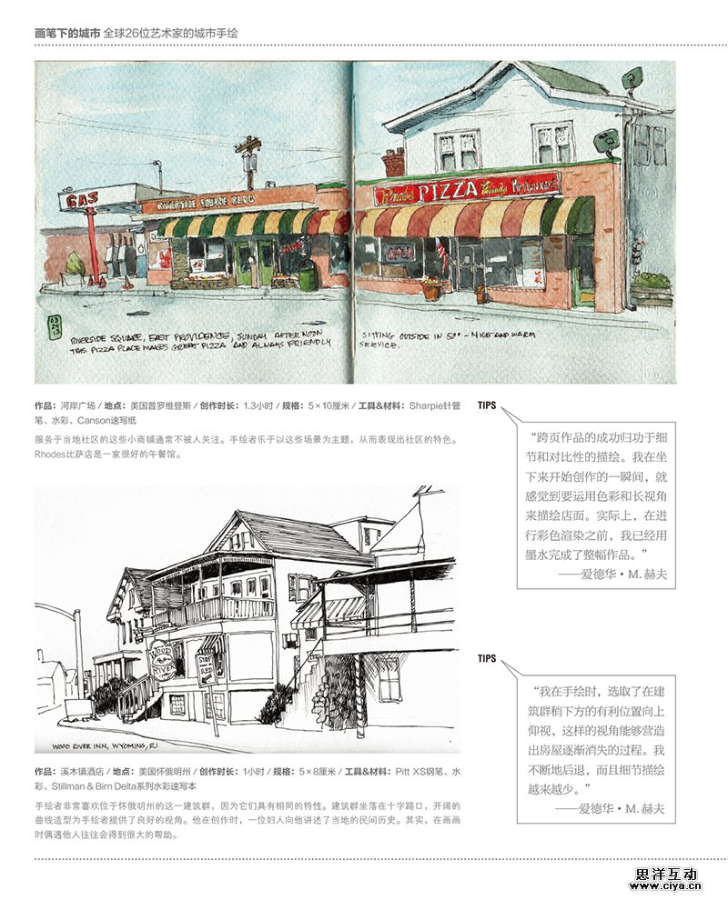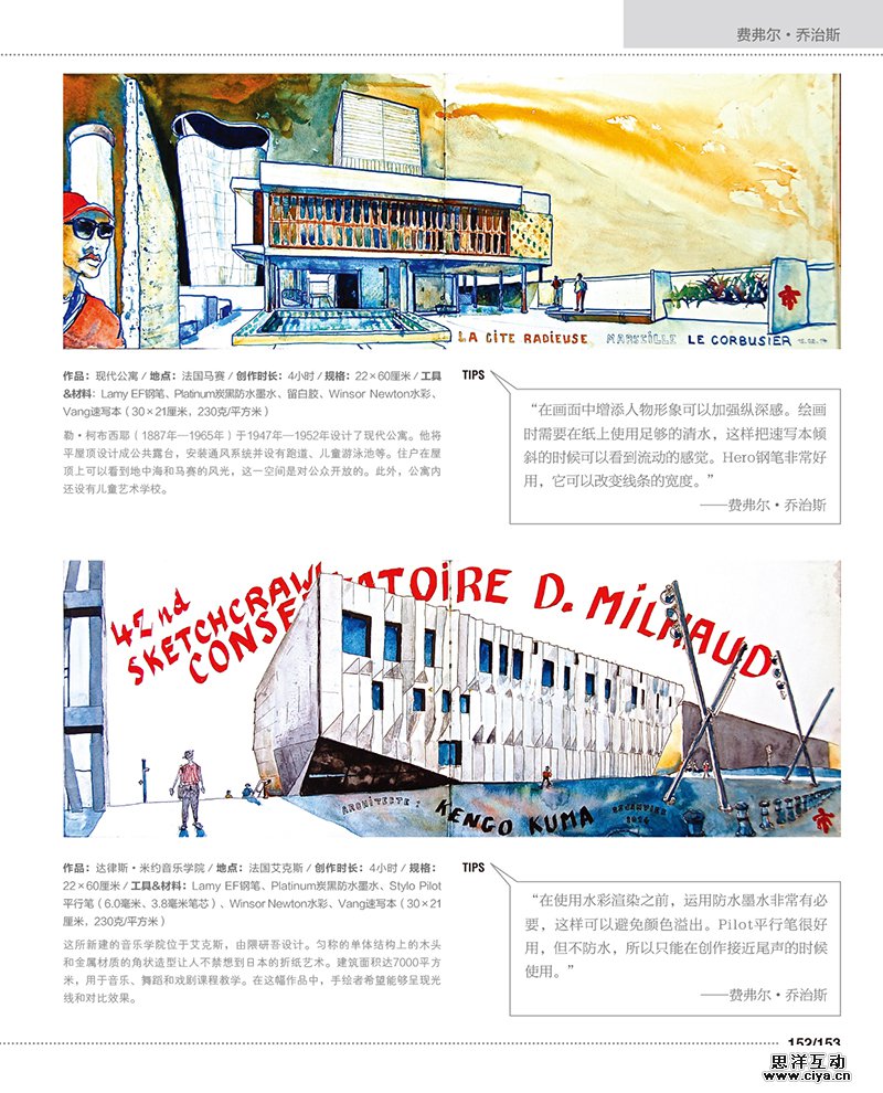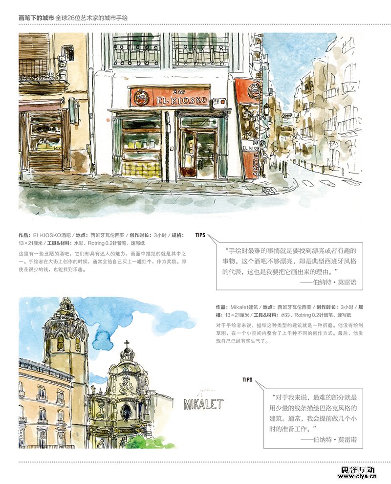 本书收录了来自世界各地多位艺术家的速写作品,其中描绘了不同城市的建筑和景观,让大家在体验不同地方的文化和迷人景色之余,更能欣赏到这些艺术家所捕捉到的精彩瞬间。