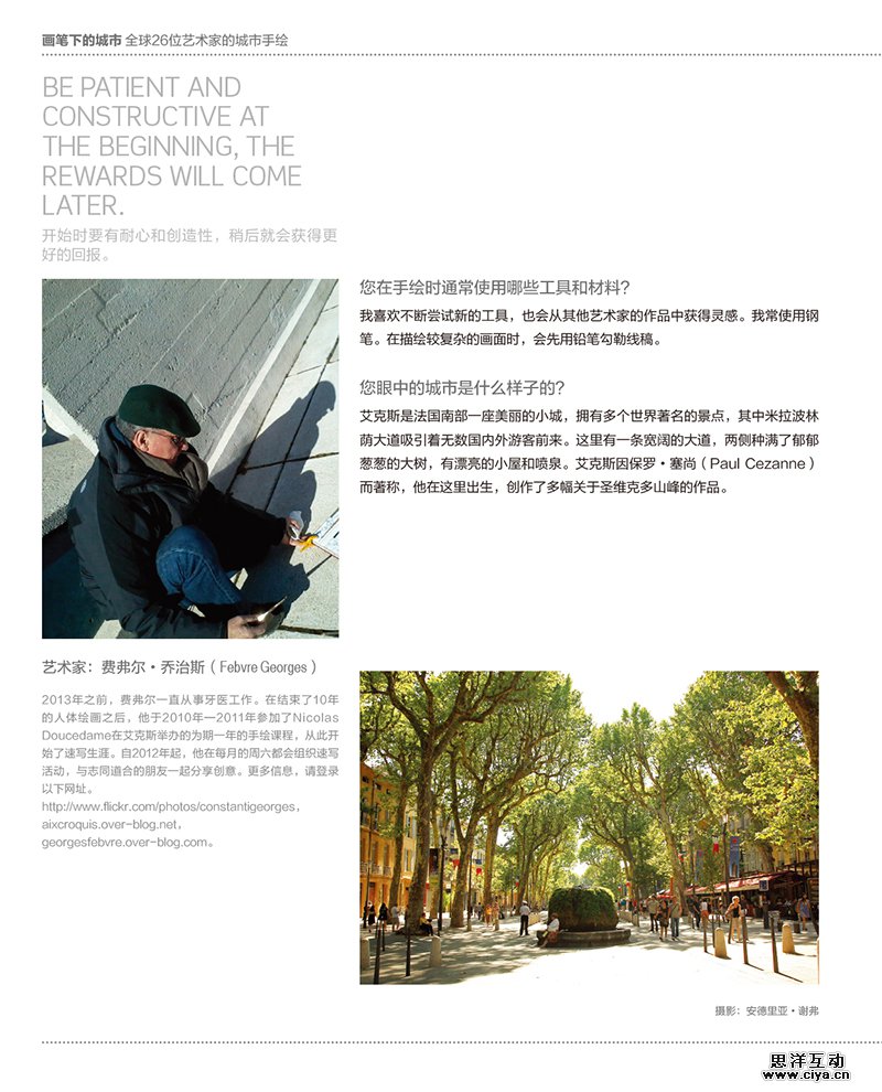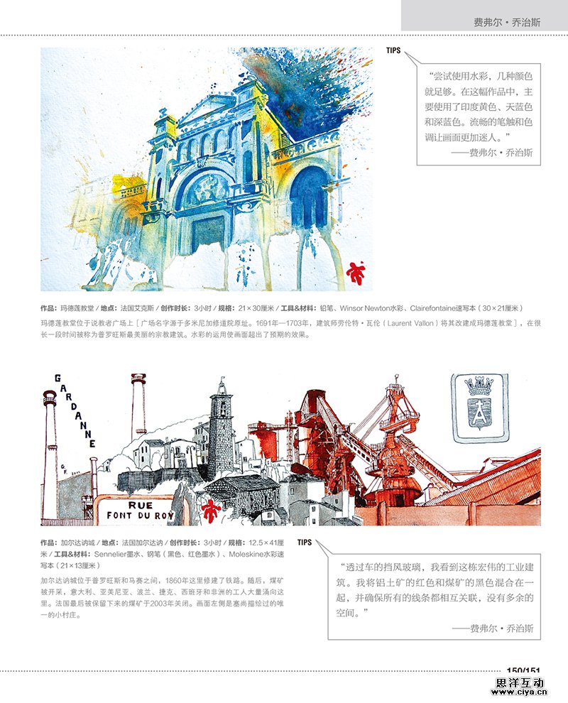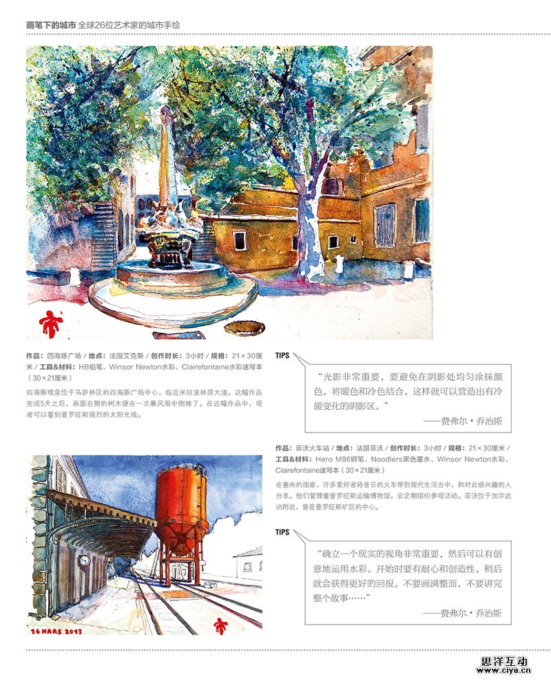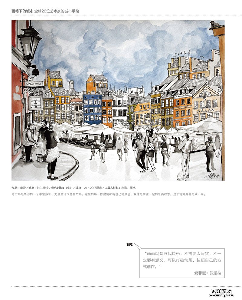 本书收录了来自世界各地多位艺术家的速写作品,其中描绘了不同城市的建筑和景观,让大家在体验不同地方的文化和迷人景色之余,更能欣赏到这些艺术家所捕捉到的精彩瞬间。