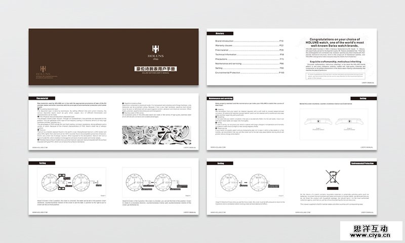 豪伦诗是我在2012年创立的品牌,品牌定位是中高端的男士腕表,用户是中等收入人群,以男性为主,我们希望能带给用户物超所值的体验,所以需要从产品的质量上以及视觉上给予用户超出预期的感觉。当充分理解上文提及的三个问题之后,我们就开始着手设计品牌VI了,从先从品牌色调开始,我们使用了深咖啡色,给人一种男性、高端的感觉,再从品牌的英文名字HOLUNS中的字母H,延伸出一个对称的图形,随后优化成一个盾牌LOGO,这个对称的盾牌有着“保护”的意思,较为适合品牌中用户的普遍审美要求。