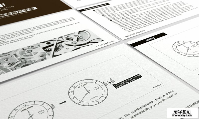 为了使整体视觉更加具有观赏性,品牌卡片以及说明书的展示方式,使用了C4D建模贴图完成,使用不同的视角让用户更加能体现到品牌的品质感。随后,手表品牌的主视觉图使用了实物拍摄+C4D建模完成。