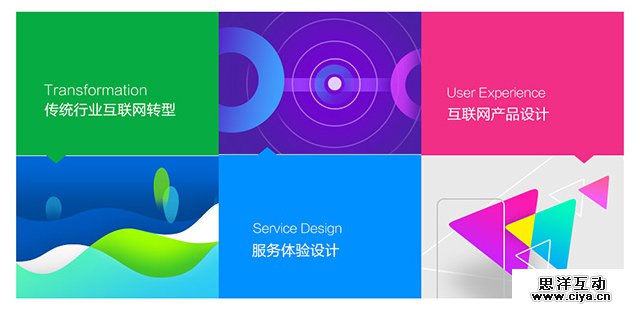 在画册或网页设计中,可以用色块来划分区域,一个色块承载一块信息,使该色块内的内容与其他信息区别开来,如果色块较多时最好让它们形成一定的节奏感,比如呈统一或渐变效果。