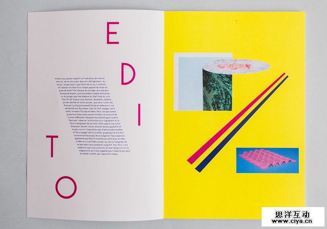 ▲上图的色块其实是左上角品牌标志的延展,构图很特别。