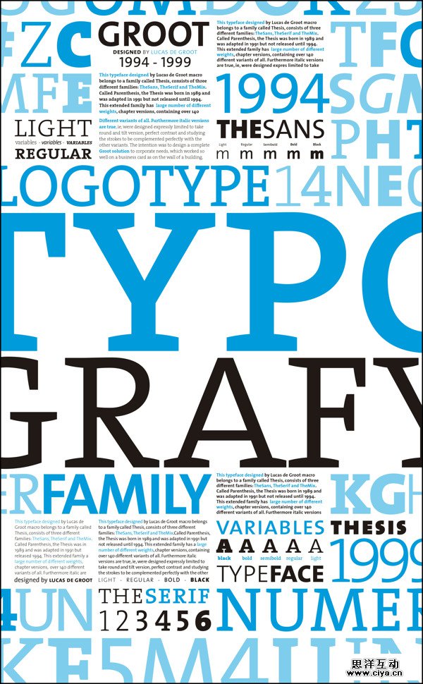 令人惊讶的是,似乎有一个规则,一个非常好的字型设计师不能是一个非常好的字体排印设计师 - 反之亦然。幸运的是,规则也有例外。卢卡斯就是一个例子。人们可能会认为,已经制作出字体家族中包含多达300种字体(字体库仍在不断扩展中)的设计师肯定是高度专业化的字体设计师,;一个设计师的工作只能由一小群同行赞赏。