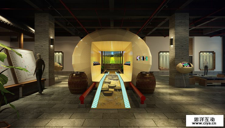 传统工艺区,大量的场景模拟环节,让展厅更富有动感,游客于空间中更易于感受古代作坊对于制作酱油的过程。