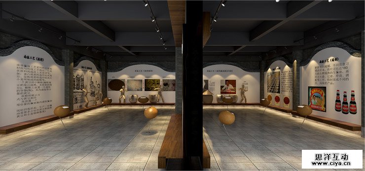 岭南建筑中的山墙造型在南派工艺区再一次运用,场景模拟和文字介绍结合,不会显得过于枯燥,也不会不知所云,利用灯光效果尽可能还原真实的酱油制作场景,山墙造型让空间倍显古色古香。