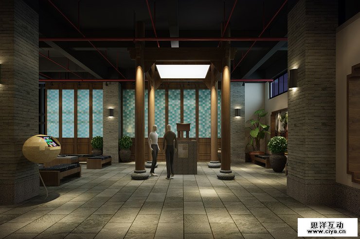 二层导览区,运用岭南建筑中的“门楼”元素,作为不同空间区域之间的划分