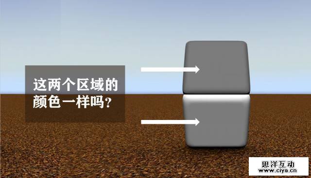 而且当你非常理性确定地告诉自己,这两块颜色就是一样的时候,你的大脑还是不太能接受,得到的判断依然还是上面深下面浅。