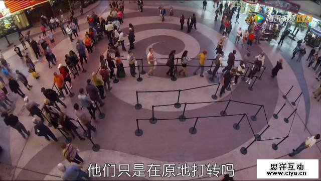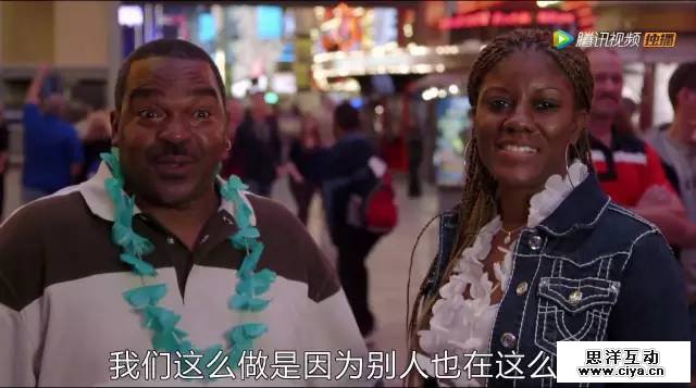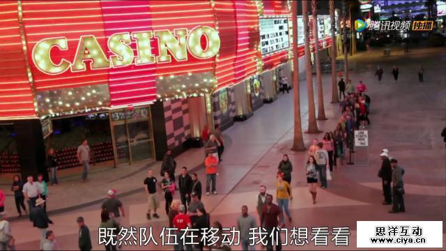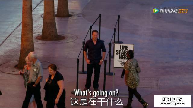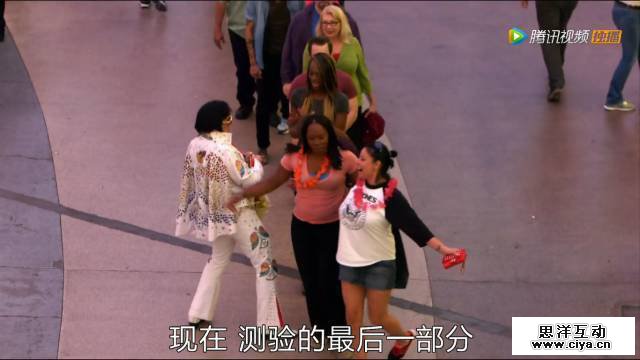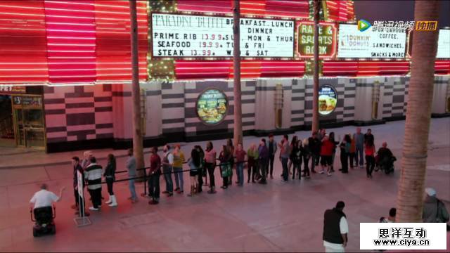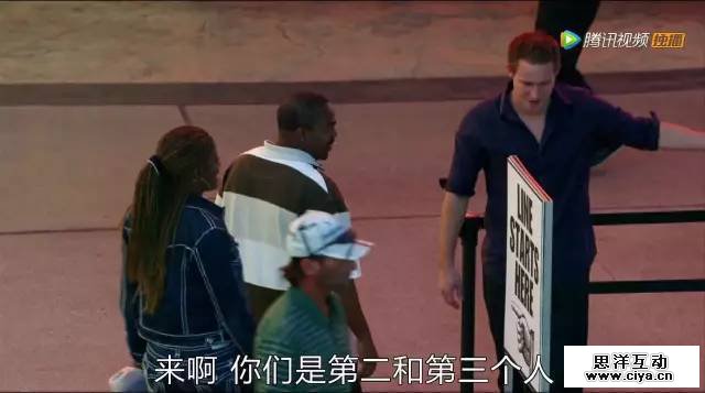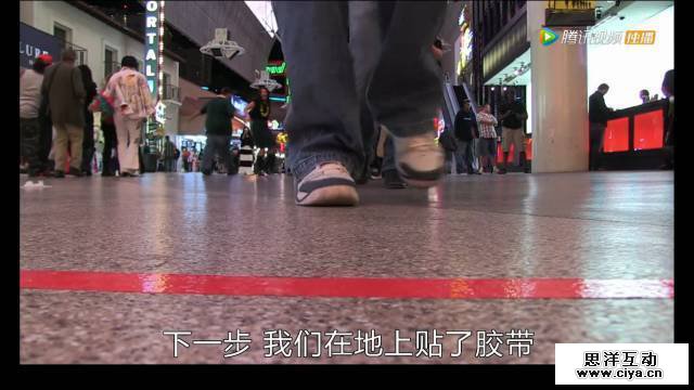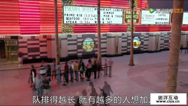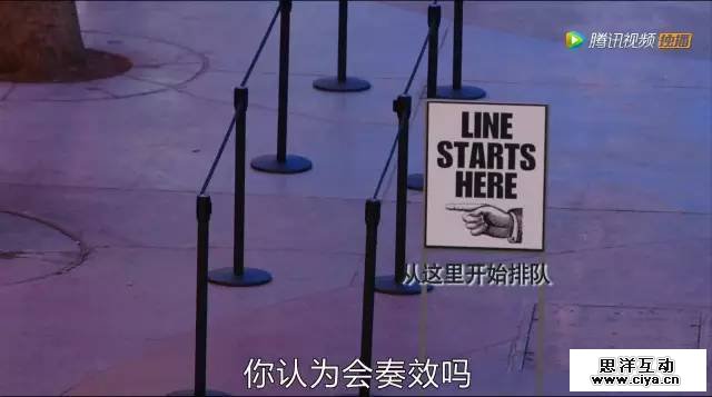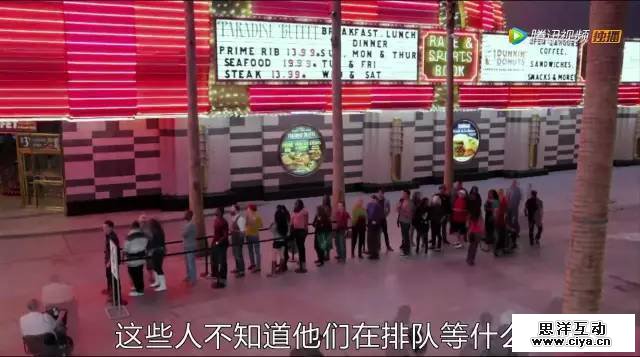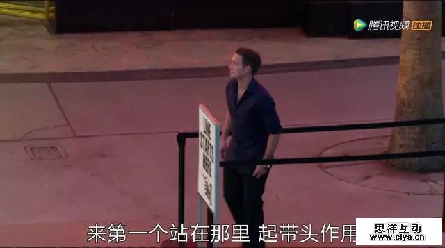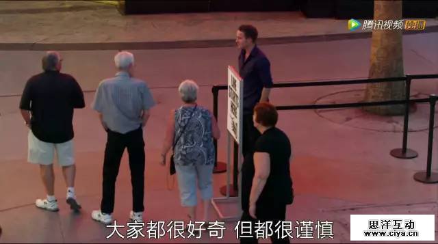 这个实验放在了拉斯维加斯的一个广场上,摆放了一个排队的区域,同时放了一个牌子写着「在这里开始排队」。