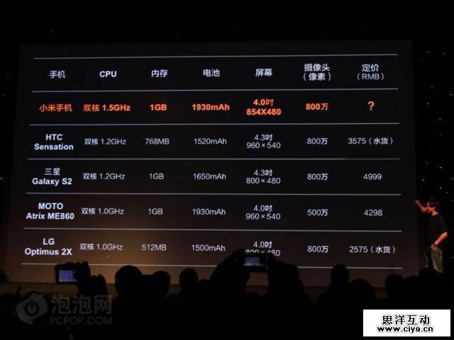 通过把CPU、内存、电池、屏幕、摄像头等多个数据,与当时世界主流的旗舰手机进行对比,并且把手机的第一批用户定位为追求配置的发烧友,让用户产生了一个认知——这个手机配置顶级,性价比超高。