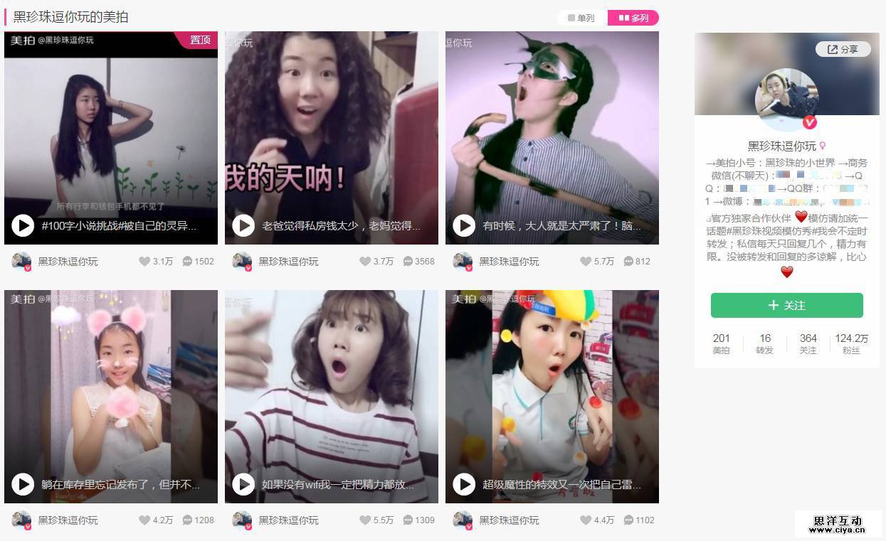 “黑珍珠逗你玩”的美拍首页