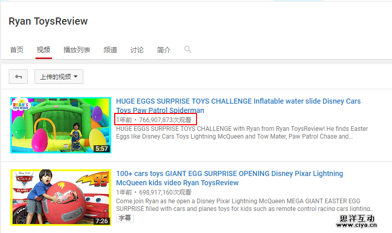 Ryan ToysReview单次播放量达7亿