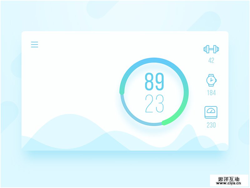 最后使用我们的颜色把所用的信息调整,背景选用比较轻快透亮的颜色,前景没有直接用白色,而是用了稍微发蓝的白色,(为了作品的整体性和谐性,我们需要带入环境色)加入波浪和细节等我们的界面就完成一半了(如图10)。