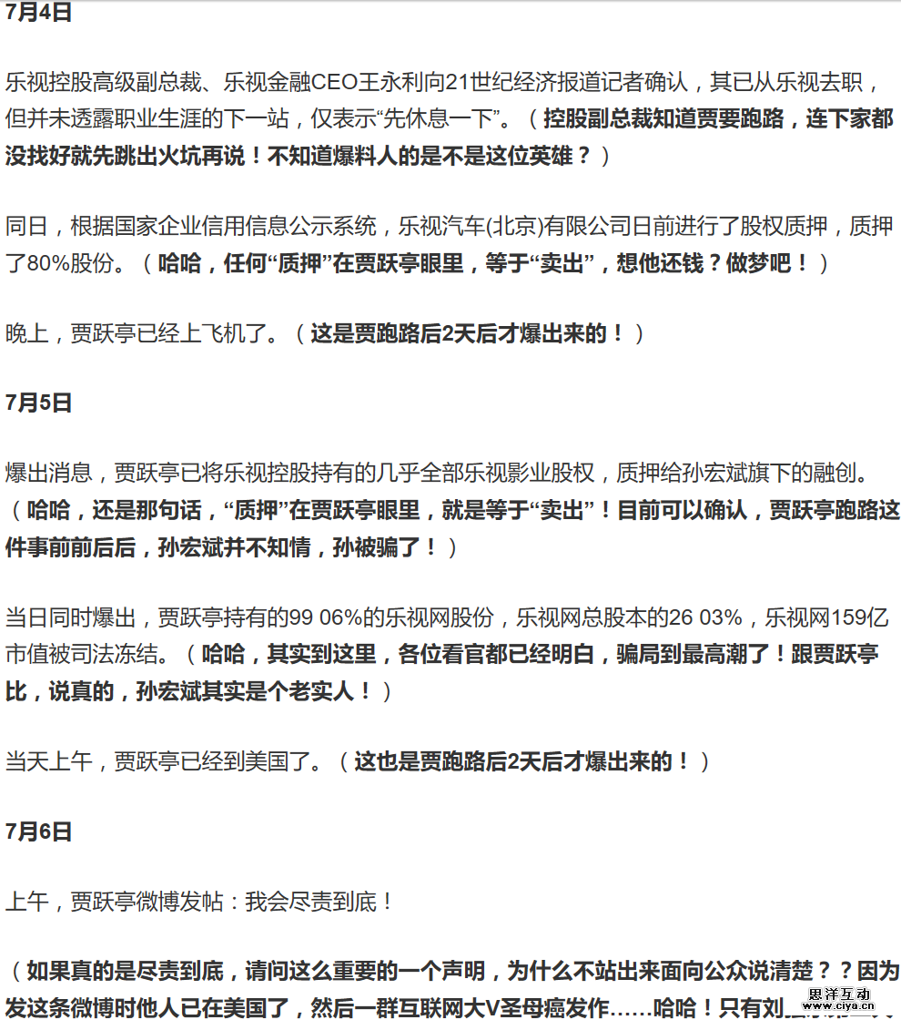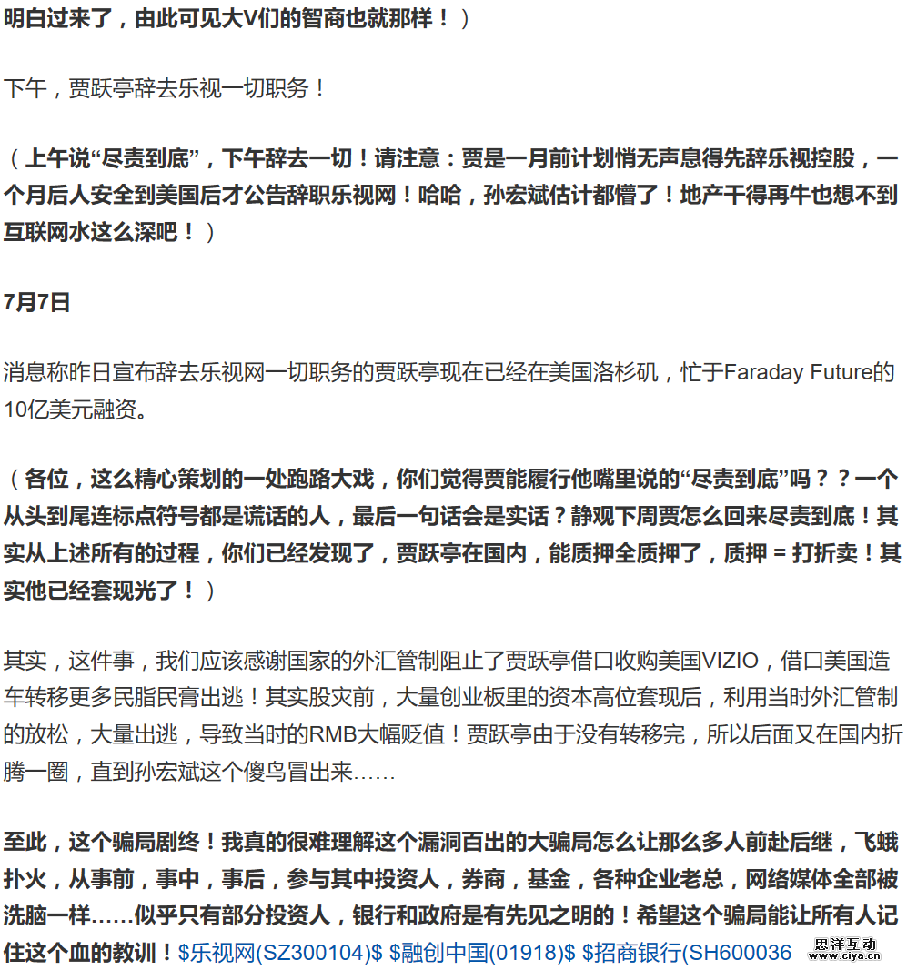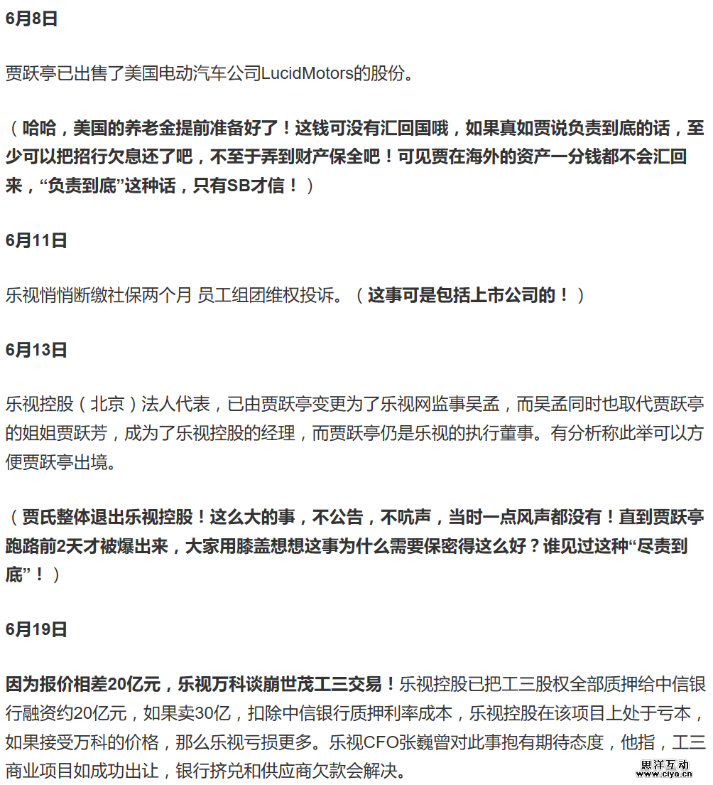当然,这位网友的分析或有偏颇之处,但也的确代表了一部分人对老贾跑路的设定。至于贾跃亭是真的跑路,还是只是去出个差,就要看他近期是否会出现在国内了。