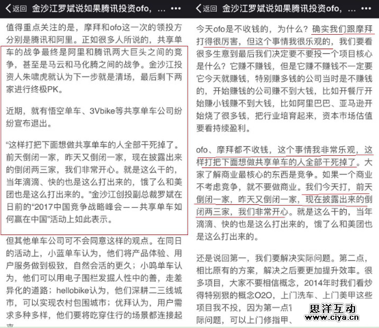 在金沙江创投A轮投资ofo之后计划把投资滴滴的资本力量悉数引入到ofo,可惜朱啸虎跟丢了腾讯、淡马锡、富士康等投资方。金沙江创投副总裁罗斌也说“90天终结论”是错估腾讯会投ofo。