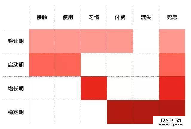 在产品发展的不同阶段,用户运营工作的重点不同。
