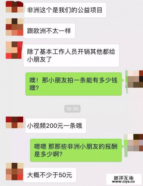 这位店主表示,非洲项目是他们的公益项目,除了基本开支和工作人员的开销,其他都给小朋友了,一条200元的视频,小朋友大概能拿到50元。按照一条视频需要10位小朋友计算,每位小朋友的报酬约为5元。