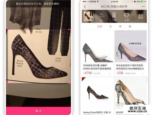 阿里公布的数据显示,2015年双11当天,千万消费者使用“拍立淘”购买了数千万元的商品而,拍立淘所覆盖的类目范畴,已经从最开始的女装,发展到目前的男女装、鞋包、配饰、食品、数码、家居、日用百货、内衣、瓶饮等十余个类目。