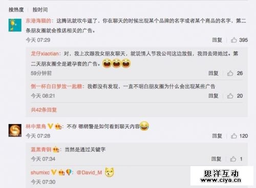 @东港海猫的:这腾讯就吹牛逼了,你在聊天的时候出现某个品牌的名字或者某个商品的名字,第二条朋友圈就会推送相关的广告。