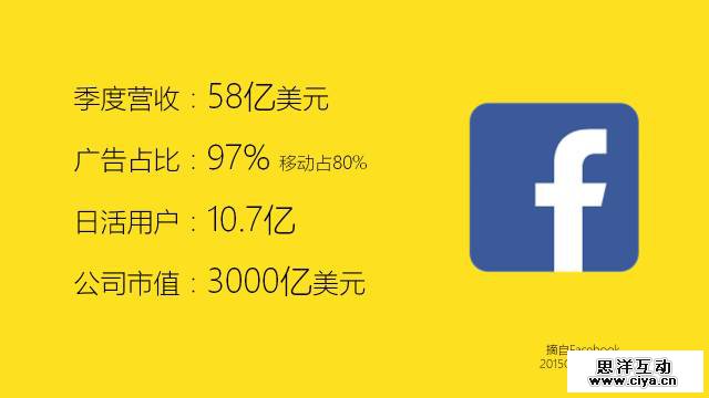 提到流量变现,业内非常值得关注的是Facebook,有一组来自Facebook 2015Q4 季度的营收数据显示其季度营收 58 亿美元,广告占比97%,其中80%来自移动端。