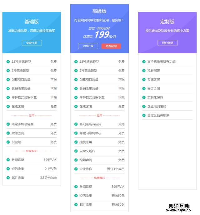 问卷网产品版本