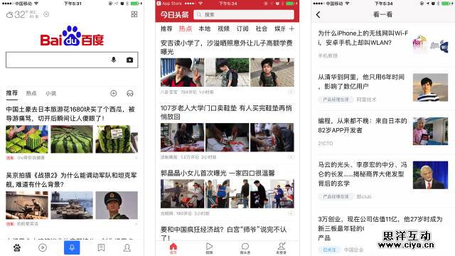 首先介绍什么是信息流,我们通常在资讯类产品中看到有很多内容按照统一的规格样式,从上往下排列形成了信息流,比如百度首页搜索框下方的内容,今日头条看到的动态内容,微信的朋友圈和刚推出的“看一看”也是信息流。