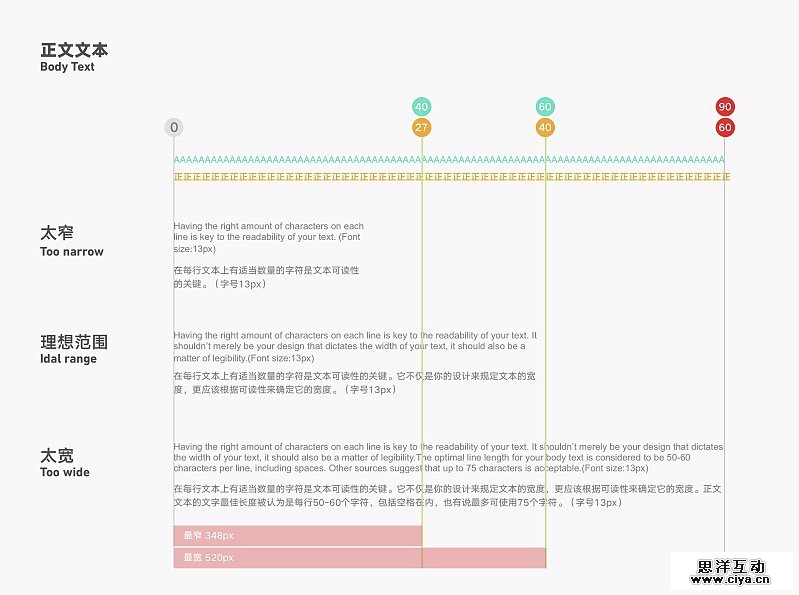 保证每一行文字的字符数量是文本可读的关键。不是设计师来定义文本的宽度,而是根据用户的可读性来定义。