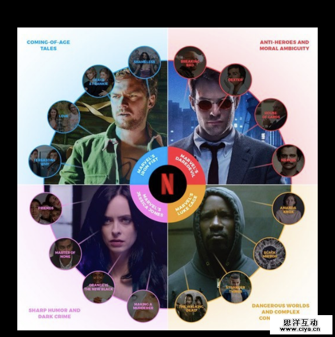 针对这个问题,Netflix将《捍卫者联盟》当做了一块试验田,他们将密切关注这部剧的数据走向,并且对不同身份标识的用户实行不同的推荐策略。测试结果将形成新的机制,用来确定如何向不同的兴趣组提供“混搭剧”推荐,同时也可以根据反馈来确定以后是否要制作更多不同剧集人物的组合剧。