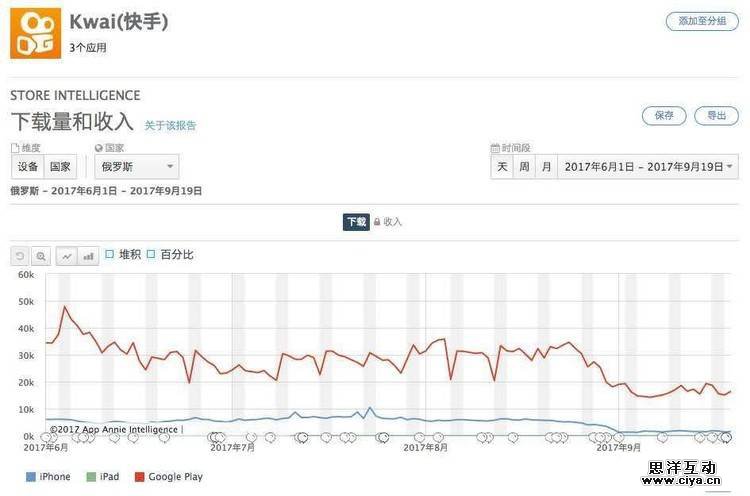 查询App Annie的数据发现,6月份以来,快手的俄罗斯版Kwai在Google play中已跌至2万以下,而iPhone版下载量几乎跌入谷底。