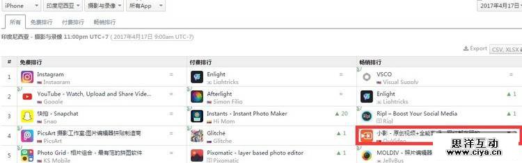 白鲸研究院的数据显示,在印尼市场,苹果App store排行榜中,影音与录影类别收录了接近50款中国应用。小影排在短视频的第一名,抖音启动国际化上升势头比较猛,与第二名的muse(musical.ly)差距缩小,乐秀排在抖音之后。