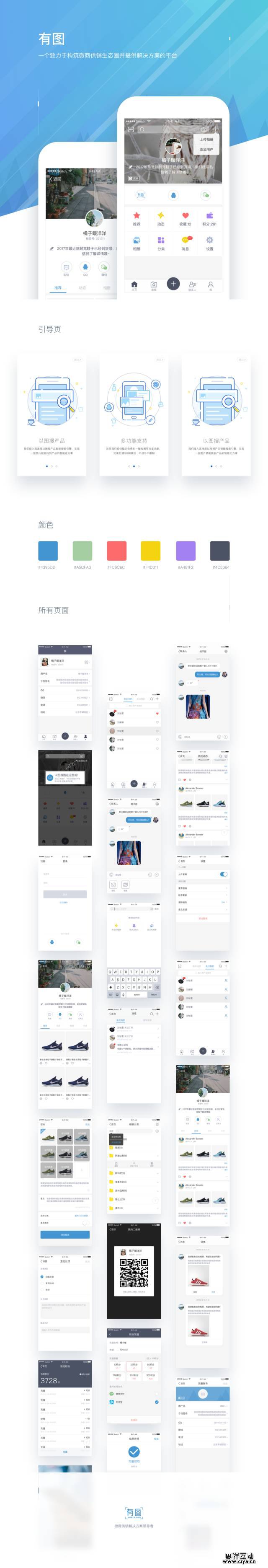 客户希望这款APP视觉风格上扁平化、交互上符合目标用户的使用逻辑。客户的目标用户主要是微商,所以希望在交互和页面布置上更加倾向于微信的操作方法。