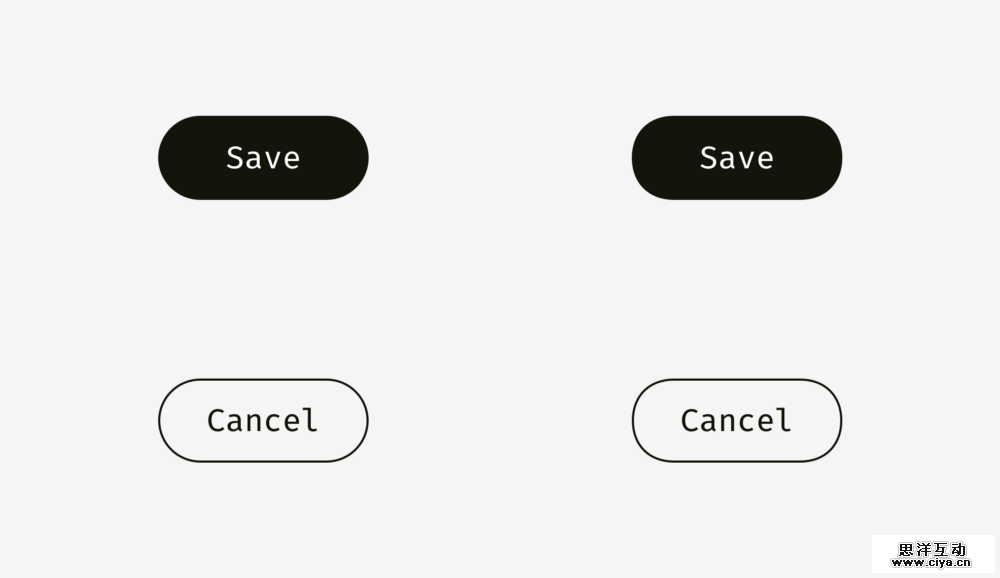 我猜你已经发现上图中右边的按钮的圆角看上去更加平滑,看起来更舒服一点。