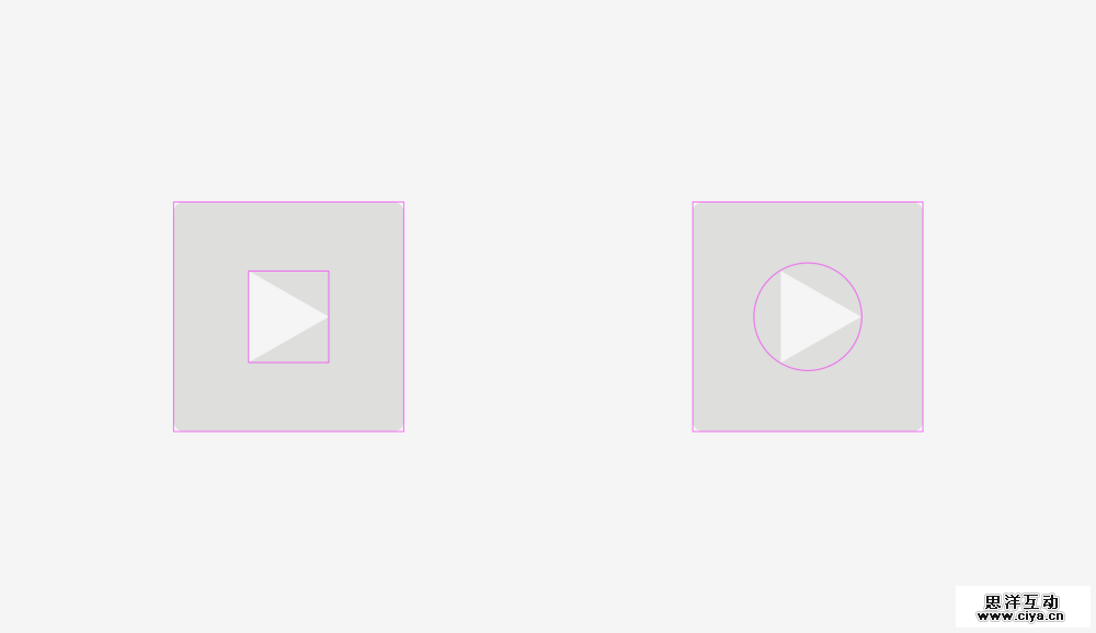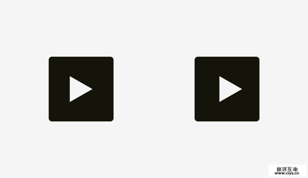 这在“播放”按钮中也是一样的。如果你直接把三角形的图标居中放在正方形的背景里,如下图左边所示,它看上去会很奇怪。