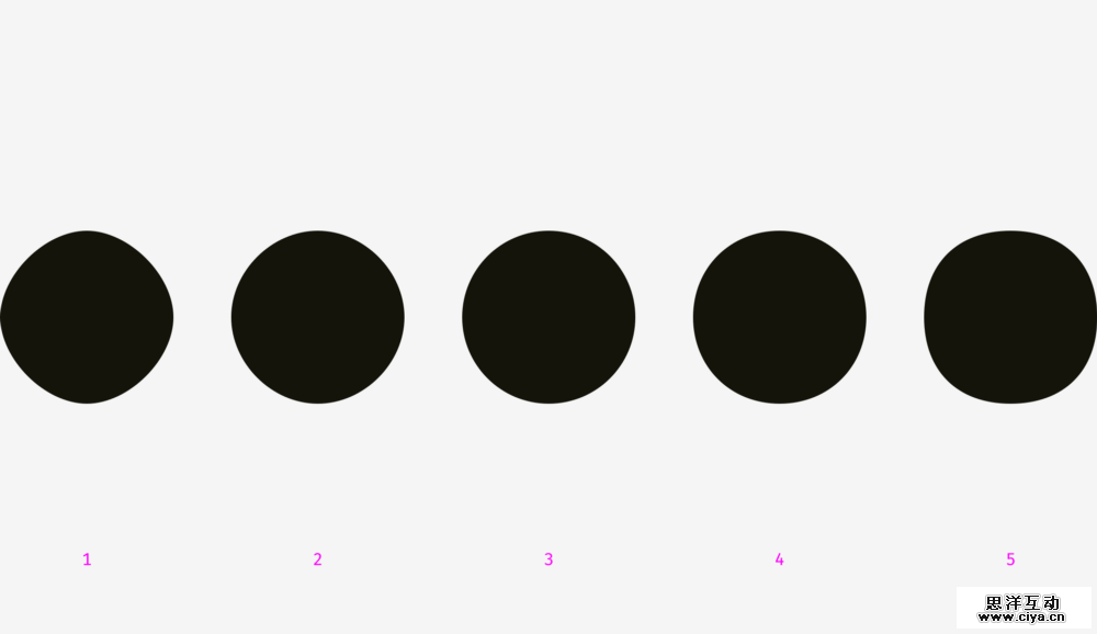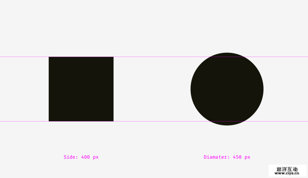 因此,从视觉这个角度讲,根据相关规则调整后的圆会比几何上的圆看起来更圆。如下图所示。