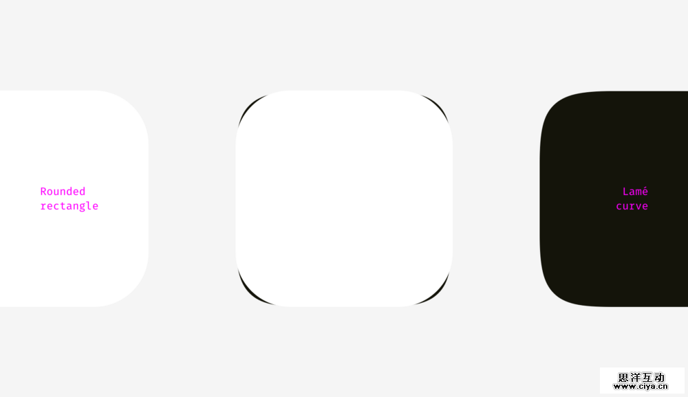 使用像superellipse这样的形状最大的好处就是他们看起来更圆、更平滑。但是,这种非标准形状很难使用到真实的界面中去。它们应该可以将多个特殊公式的SVG合并得出,或者使用一些脚本,或者像苹果公司在它们的app 图标上做的那样使用PNG的蒙版。