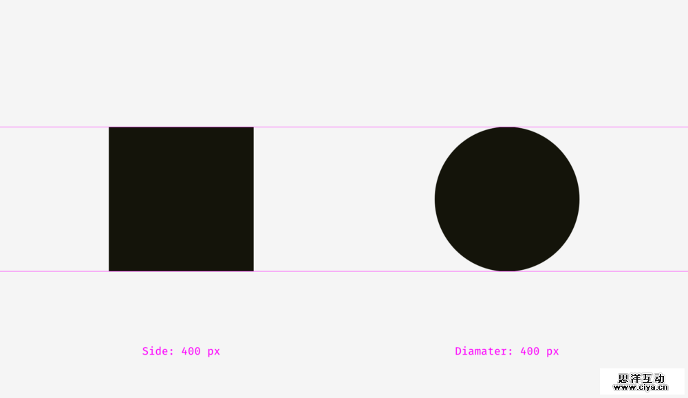 是不是感觉左边的正方形比右边的圆大很多。但是如果我告诉你,从几何的角度来看,它们的宽度和高度是一样的。我知道你一定觉得我再骗你,那我只能标注一下刻度了。