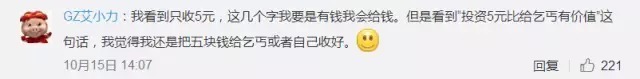 也有人表示可以理解:“不算诈骗,帮助几块钱那都是小事”。如果是真的有困难,给5块钱,也不会去想要多大的回报。