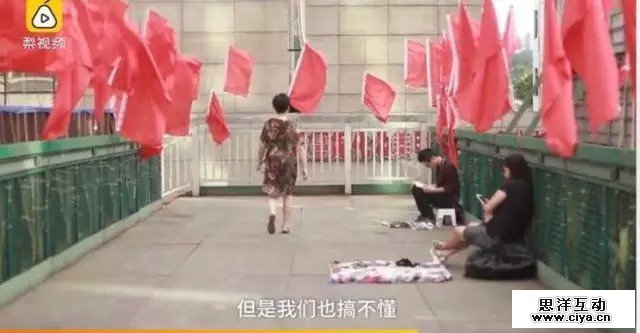 就在该男子身旁大概3米的地方,有一个年轻女子在旁摆摊卖小商品。