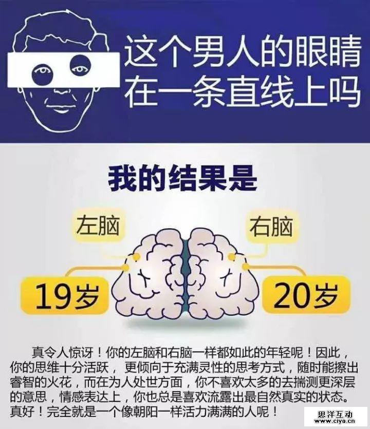 接下来类似这样看似高深又搞不懂,有什么意义的题目做上几道,左右脑各是多大岁数就测出来啦!