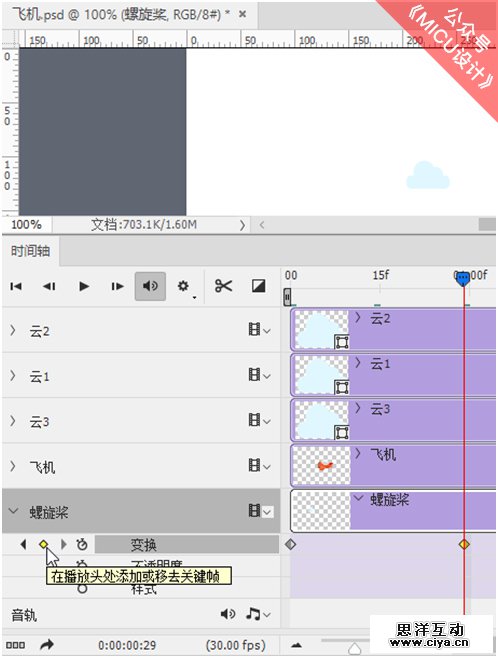 整个视频教程分为3部分制作,首先是飞机螺旋桨的透视动画效果,其次是飞机在空中飞翔的效果,最后还要适当调整云朵的位置以及隐藏效果等。不过总体说来,操作起来还是非常简单易懂的!赶紧跟随我们行动起来吧!!